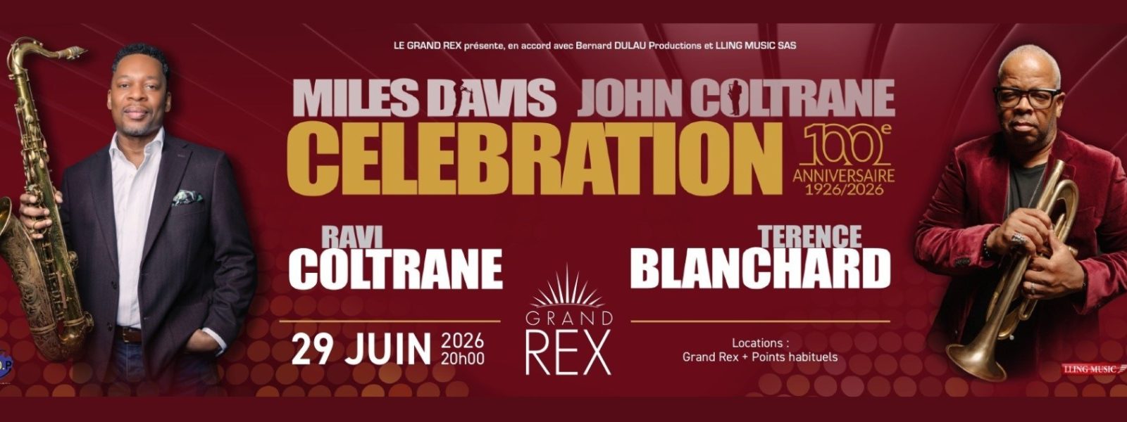 Le Grand Rex célèbre le centenaire de deux icônes du jazz. Deux grands noms du jazz contemporain se retrouvent sur scène : le trompettiste Terence Blanchard, compositeur incontournable des musiques de films de Spike Lee, et le saxophoniste Ravi Coltrane, auteur de la B.O du film "Sophie et le Scorpion" de Tony Gatlif et superviseur de l’utilisation des œuvres d’Alice Coltrane pour la B.O de "Priscilla" de Sofia Coppola. Ils célèbrent ici les figures tutélaires de Davis et Coltrane en revisitant leurs œuvres avec respect, liberté et intensité. Un hommage vibrant placé sous le signe de l’héritage, de la transmission… et de l’avenir du jazz.